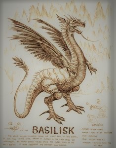 My aiglonax is a composite of creatures from mythology like cockatrices, flying serpents, rocs, and griffins. He has some of their powers, including flight, paralyzing venom, poisonous breath, incredible strength, and shape-shifting. In Malevir: Dragons Return, as an ogre or basilisk depending on his aims, he preys upon the Veiled Valley of Dragonwolder; and, because of the Malevir’s trickery, the farmers and townspeople believe not the aiglonax but dragons, previously their protectors, are responsible for the creature’s attacks on their fields and livestock. They cannot imagine the existence of a living aiglonax. That’s the stuff of hoary legends, they say.