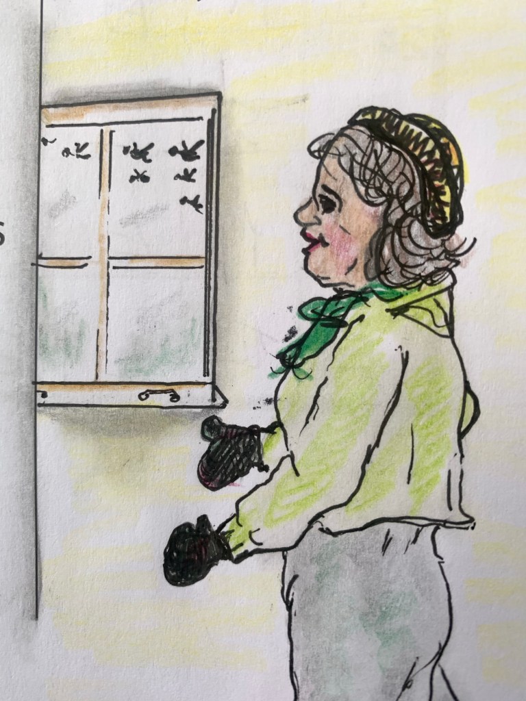 Now, my days are fraught with challenges, but they all begin similarly. I hear the cat scratching at my door (husband already up and exercising for hours). I open my eyes, stretch, count my blessings, and practice a few PT exercises. I let Cat into the bedroom and dress in gym clothes or stay in my winter pj’s. Which path to choose—organized list-following or a good wallow with coffee and The New Yorker? Here is my Gerty who faces the same dilemma: